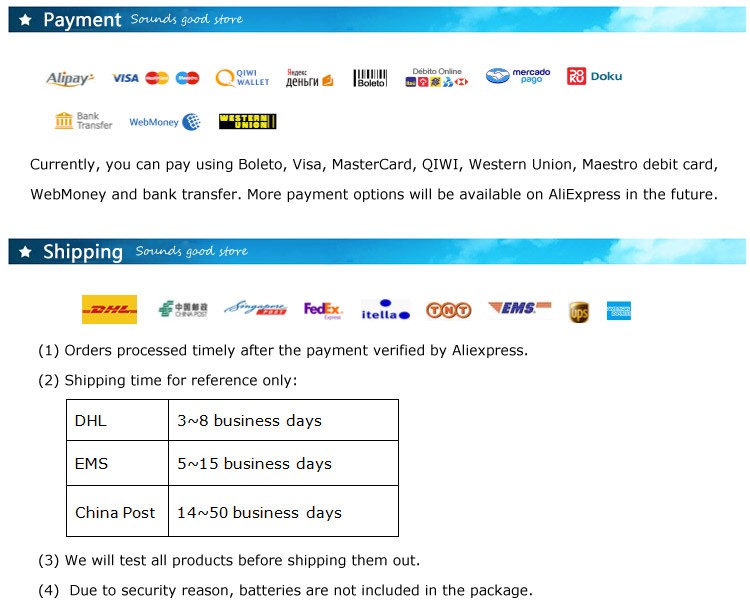 | Seller Service | On-time Delivery If you do not receive your purchase within 60 days, you can ask for a full refund before order completion (when you click "Confirm Order Received" or exceed confirmation timeframe). |