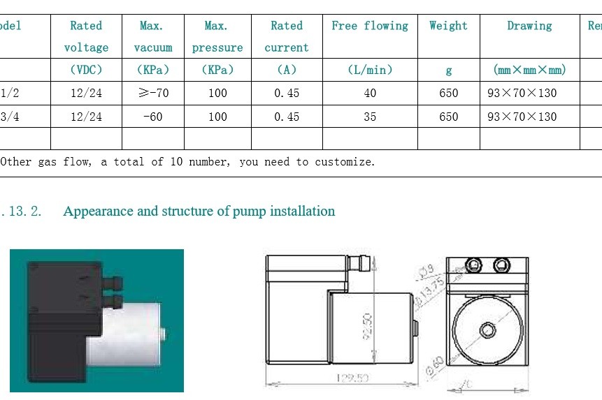 12v/24vปั๊มสุญญากาศมินิไหลขึ้นไป35l/m, 40l/m650g, 93*70*130mmของ- 70กิโล/- 60กิโล100kpa