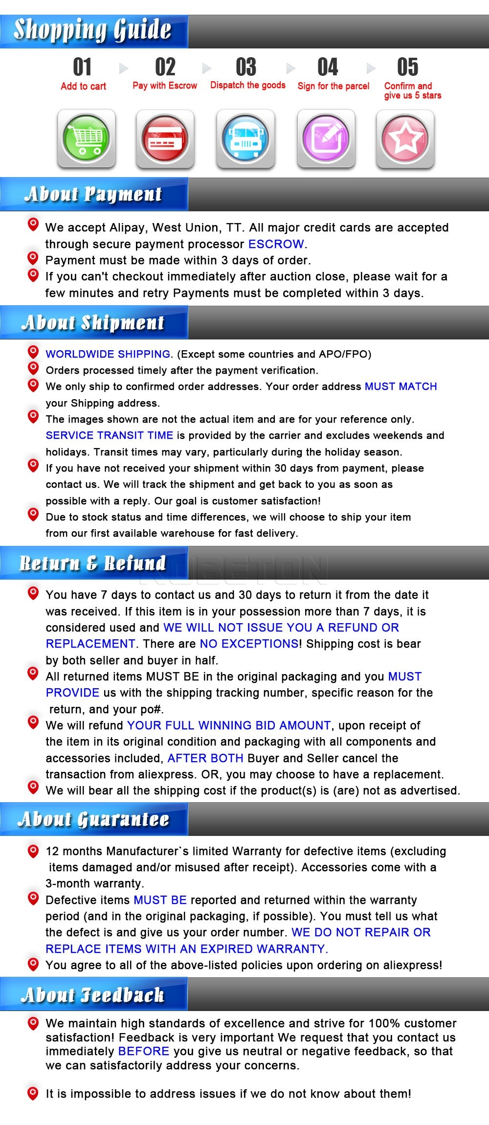 Return Policy If the product you receive is not as described or low quality, the seller promises that you may return it before order completion (when you click "Confirm Order Received" or exceed confirmation timeframe) and receive a full refund. The return shipping fee will be paid by you. Or, you can choose to keep the product and agree the refund amount directly with the seller.