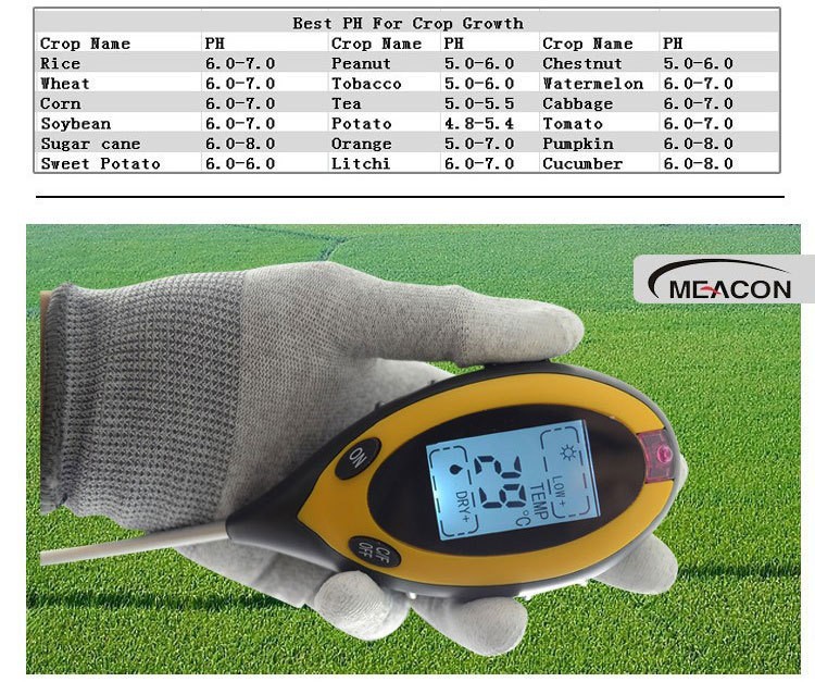 4 In 1 Soil PH meter Temperature Moisture Light intensity tester Backlit digital display For Agriculture Free Shipping