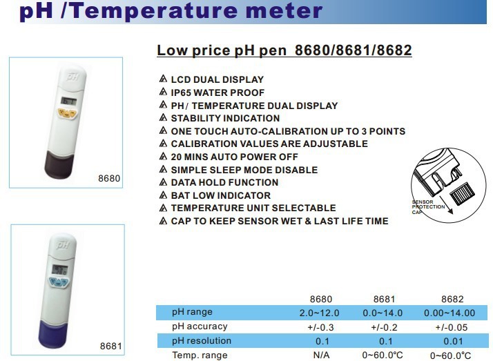 ปากกาphค่าใช้จ่ายต่ำสุดที่แสดงค่าphหนึ่งสัมผัสสำหรับรถยนต์- การสอบเทียบที่ตรงกับที่อยู่อาศัยกันน้ำip65คะแนนที่ได้รับการยอมรับบัฟเฟอร์อัตโนมัติเพื่อหลีกเลี่ยงข้อผิดพลาดในช่วงการสอบเทียบที่