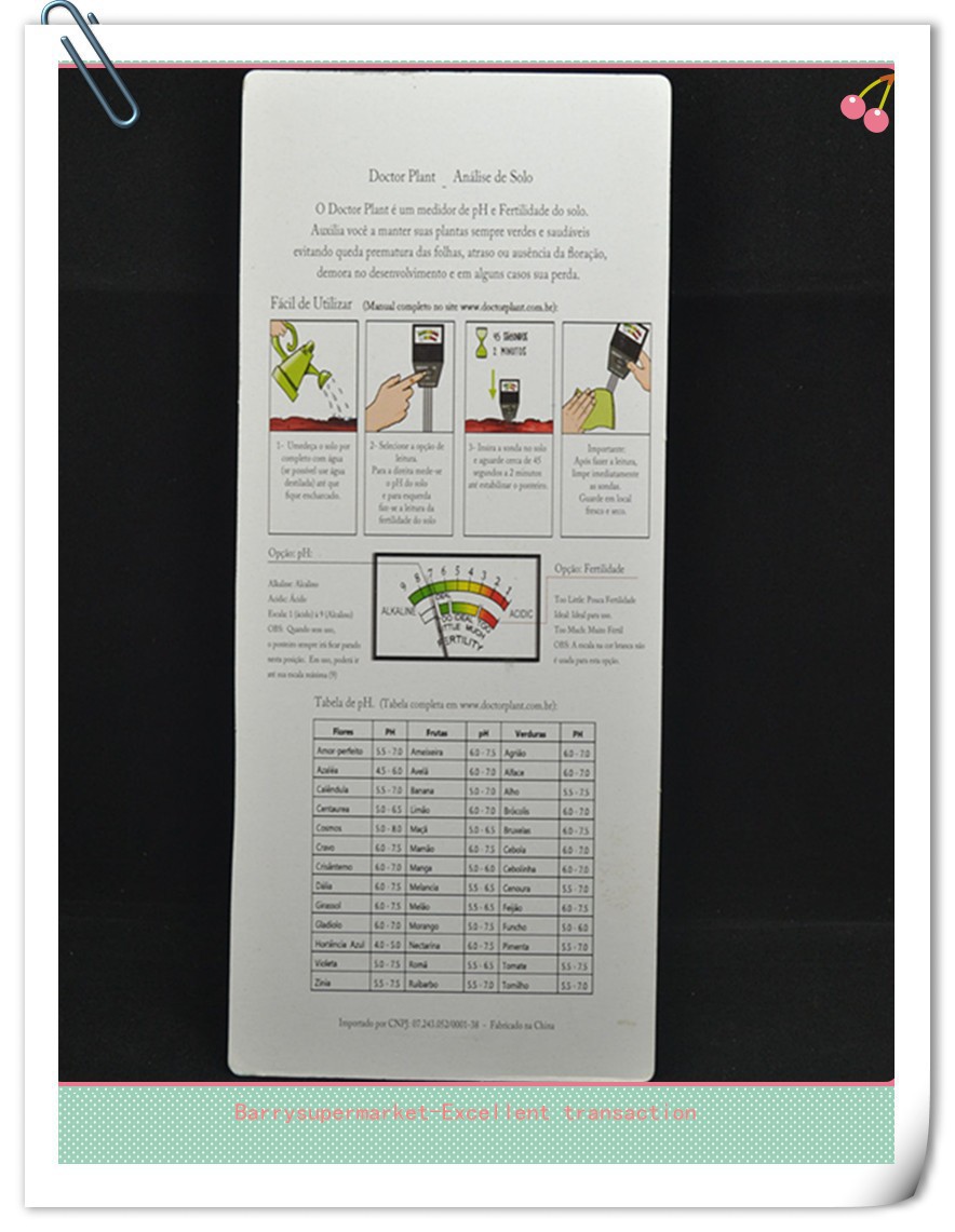 ตราสารนี้เป็นผู้ช่วยที่ดีของสวน, คุณสามารถทดสอบค่าphของดิน( ph, ความอุดมสมบูรณ์ของดิน, และดูว่าคุณต้องการการปฏิสนธิของแบตเตอรี่ไม่มีของ